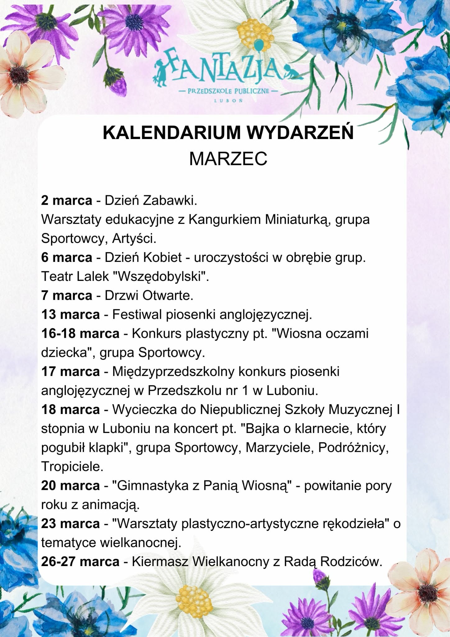 Kalendarz wydarzeń – marzec